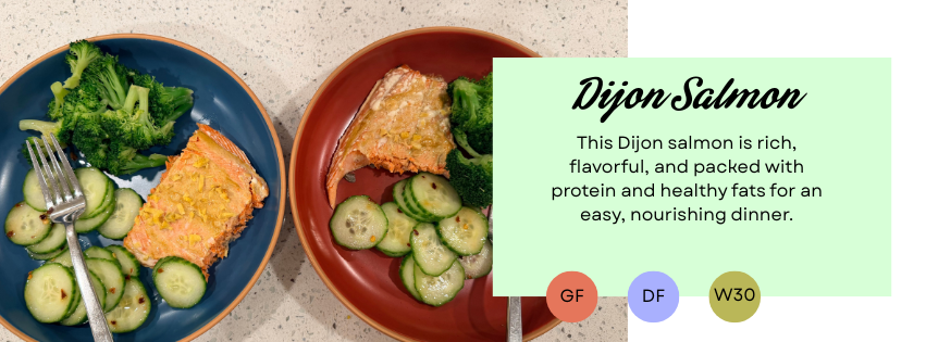 Slather salmon in Dijon, sprinkle ginger on top, and sprinkle with sea salt